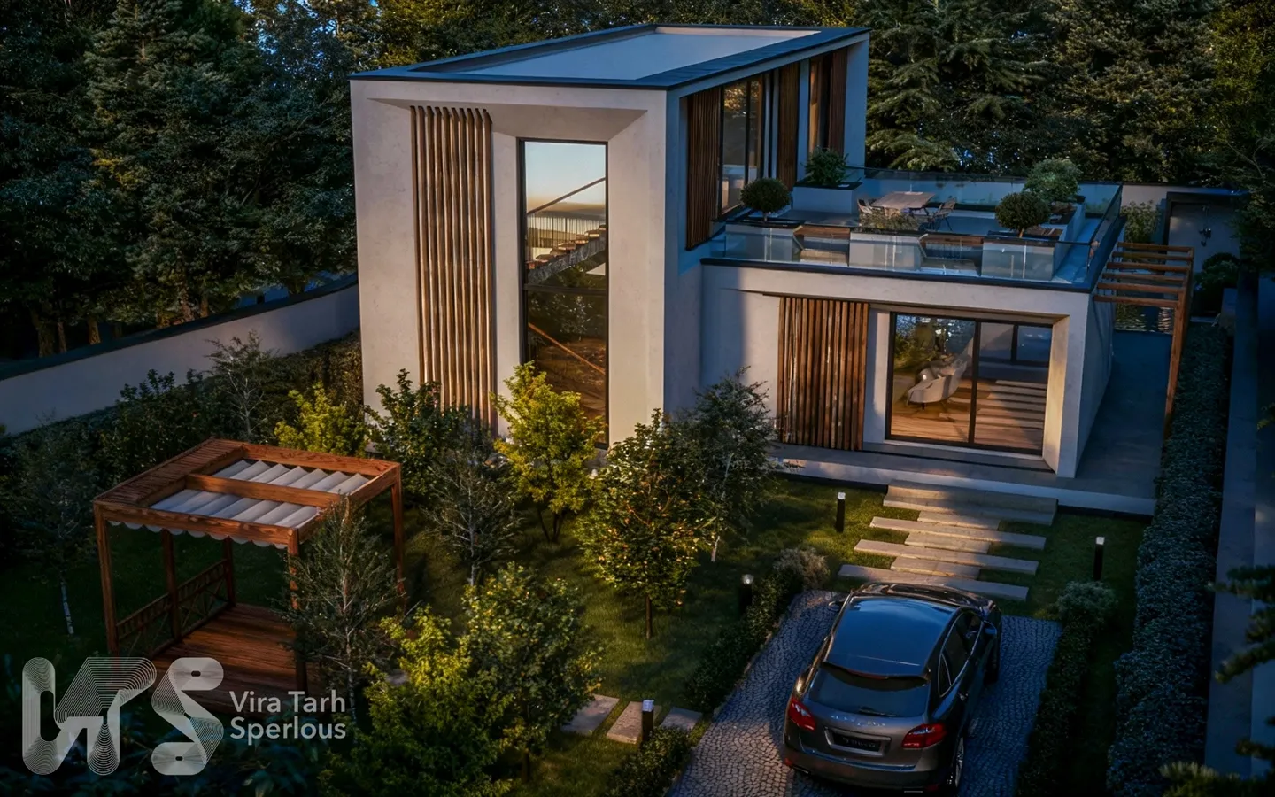 این ویلای دوبلکس مدرن به سفارش جناب آقای کُرد و در منطقه آبسرد دماوند طراحی و اجرا شده است. متراژ زمین پروژه ۳۹۰ مترمربع بوده و سطح اشغال بنا ۱۱۰ مترمربع در نظر گرفته شده است؛ در حالیکه زیربنای کل ساختمان حدود ۱۶۰ مترمربع میباشد. طراحی معماری ویلا بر اساس اصول سبک مدرن شکل گرفته و با تأکید بر سادگی، خوانایی احجام و ترکیب متریالهای معاصر انجام شده است. استفاده از خطوط صاف، حجمهای مکعبی، بازشوهای بزرگ شیشهای و تلفیق متریالهایی نظیر سیمان سفید، چوب ترمو و شیشه، نمایی مینیمال و در عین حال گرم و چشمنواز ایجاد کرده است. در این پروژه، استخر در محوطه ویلا جانمایی شده که نقش مهمی در ارتقای کیفیت فضایی و ایجاد ارتباط بصری میان فضای داخلی و خارجی ایفا میکند. همچنین طراحی روفگاردن بهعنوان یکی از فضاهای شاخص ویلا، امکان استفاده بهینه از بام، ایجاد فضای نشیمن باز و بهرهمندی از چشمانداز طبیعی منطقه آبسرد را فراهم آورده است. این ویلا نمونهای از یک طراحی مدرن، جمعوجور و عملکردگراست که متناسب با ابعاد زمین و نیازهای کارفرما، فضایی آرام، کاربردی و امروزی را ارائه میدهد.
