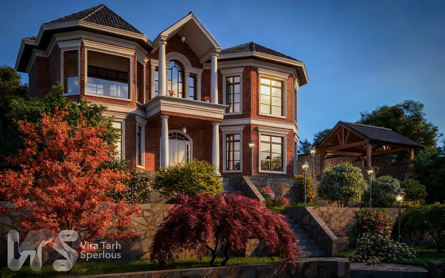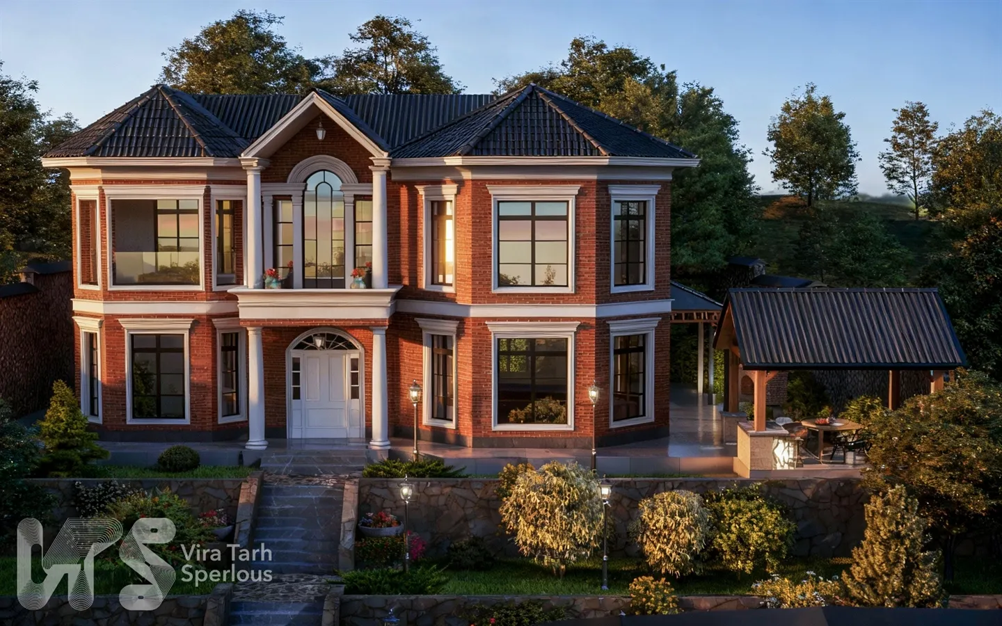 طراحی ویلا دوبلکس انگلیسی آجری در ارنگه