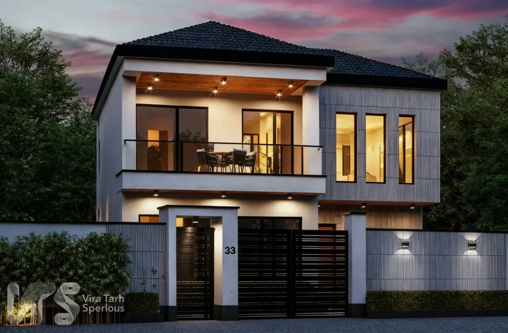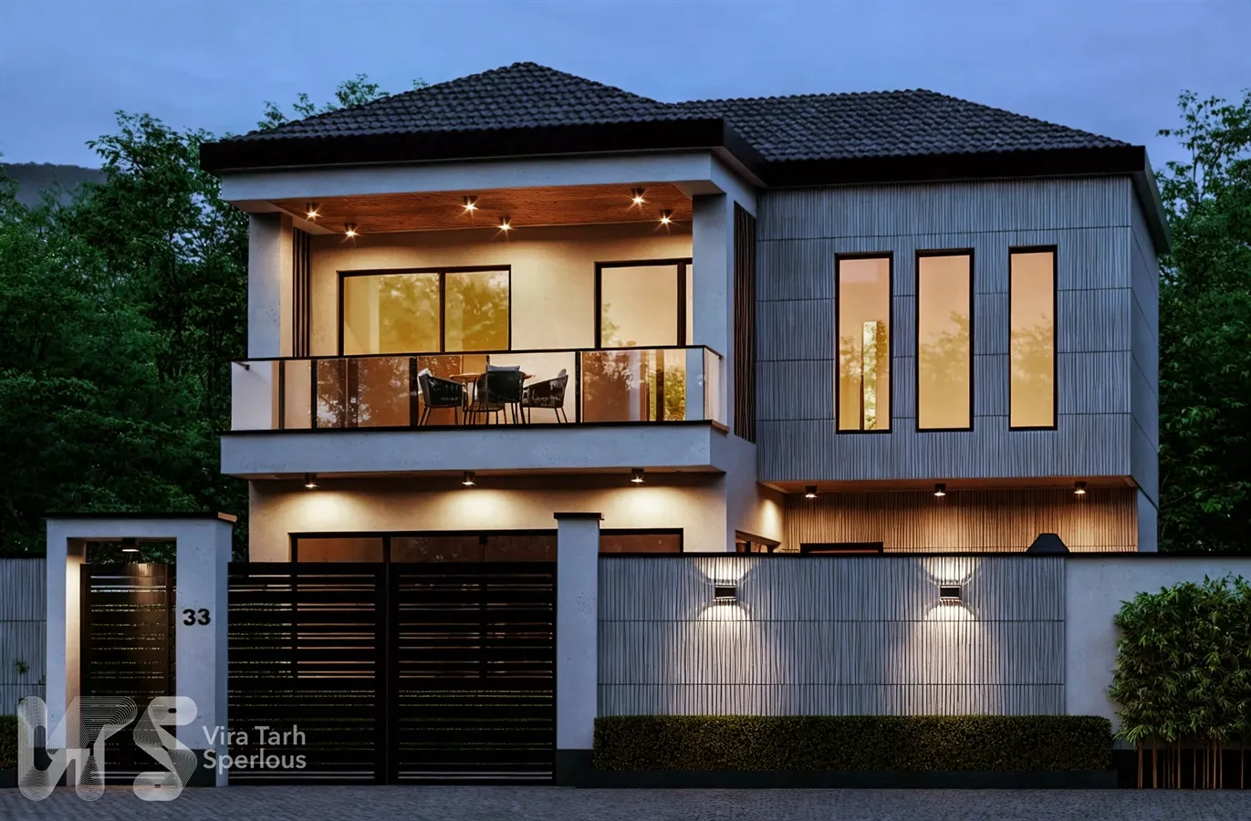 ویلای دوبلکس جناب آقای سینایی واقع در منطقهی سلیمآباد مازندران ، نمونهای جمعوجور و در عین حال شاخص از معماری مدرن است که با رویکردی کاربردی و زیباشناسانه طراحی شده است . این پروژه بر روی زمینی به مساحت ۲۰۰ مترمربع و با سطح اشغال ۱۰۰ مترمربع احداث شده و دارای زیربنایی برابر با ۲۰۰ مترمربع در دو طبقه میباشد . فرم ساده و منظم بنا ، ترکیب متریالهای مدرن ، خطوط افقی و عمودی شفاف و بازشوهای وسیع ، جلوهای امروزی و پویا به نما بخشیده و نور طبیعی را بهخوبی به فضاهای داخلی هدایت میکند . بالکن سراسری طبقه بالا و نورپردازی نما ، کیفیت بصری پروژه را در شب دوچندان کرده و در مجموع این ویلا را به گزینهای مناسب برای سکونت دائمی یا اقامت تفریحی در یکی از مناطق خوشآبوهوای شمال کشور تبدیل نموده است.